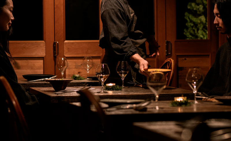 多種多様な茶葉をベースに、この森の果実やハーブを組み合わせたオリジナルドリンクをペアリング。アルコールが苦手な方やお車でいらっしゃった方にもガストロノミーを楽しんでいただけるよう、生み出しました。